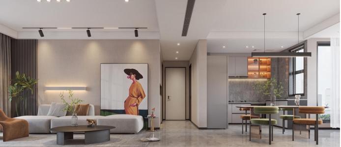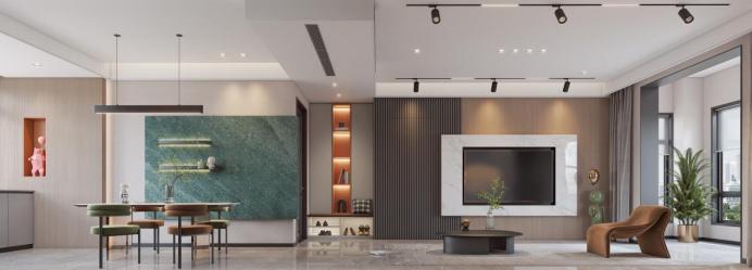 本案风格定位为现代简约,功能上十分符合现代居家的生活方式,开放式的空间让生活方式具有趣味性及仪式感,充满烟火气息。棕色+宝石绿的独特复古配色,治愈且富有质感,不仅仅是提升了空间的格调,更是增添了一丝放松惬意的氛围,让人身处其中无比自在。